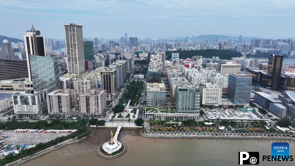 An aerial drone photo shows a view in south China's Macao, Nov. 23, 2024. This year marks the 25th anniversary of Macao's return to the motherland. After 25 years of development, Macao has become a world renowned tourism destination, where Eastern and Western cultures have co-existed for over 400 years. (Xinhua/Wang Yiliang)